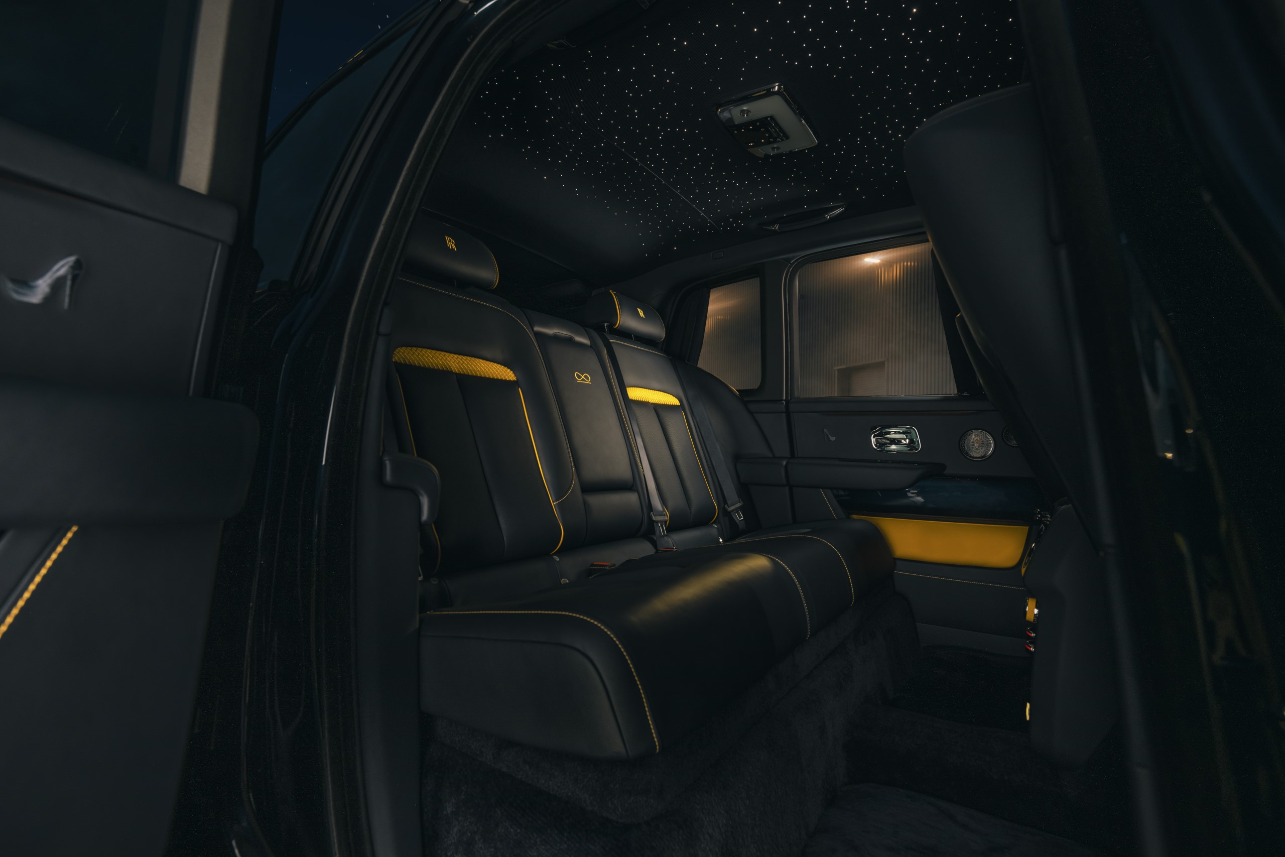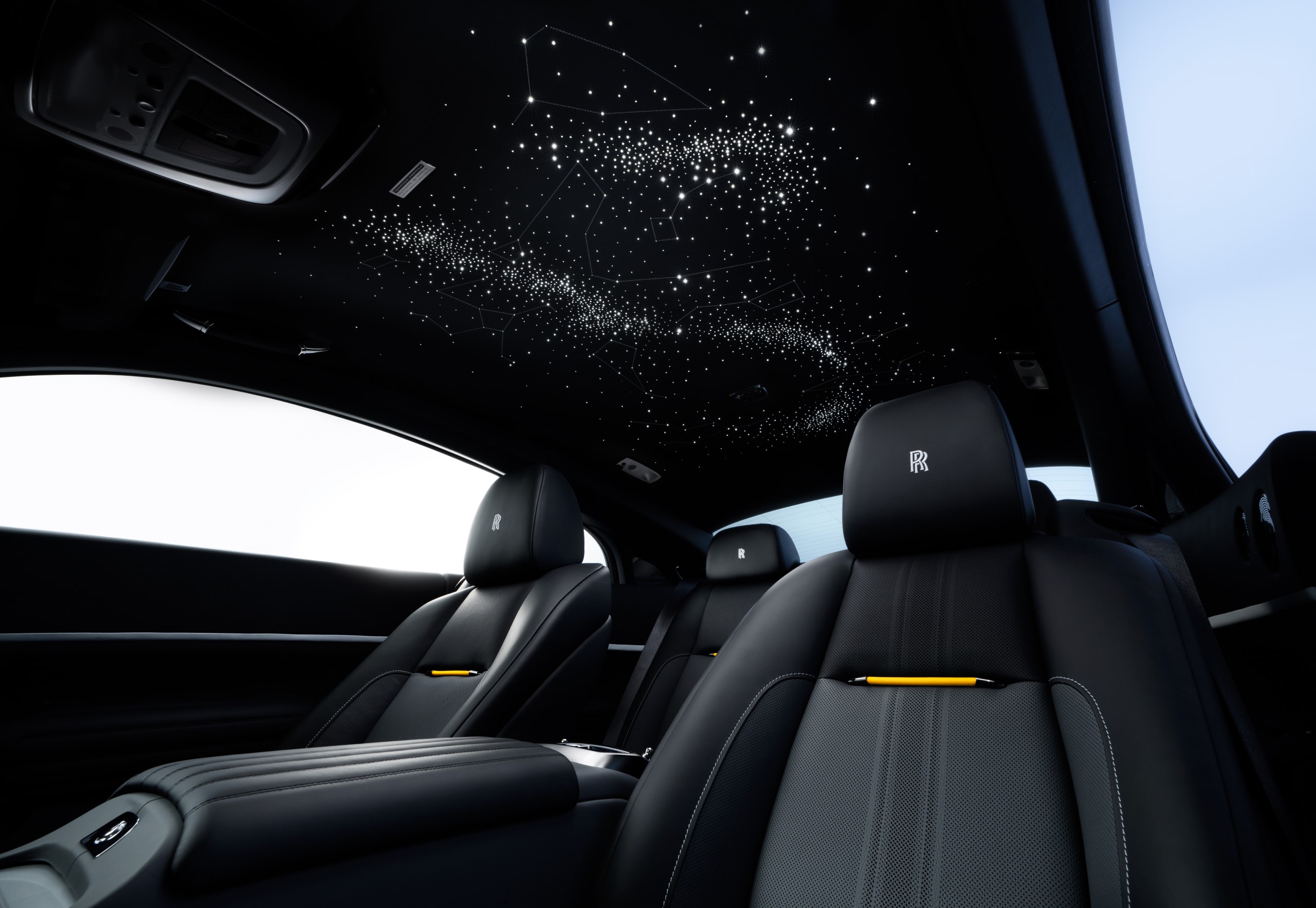 In Black Badge Wraith Landspeed, the Starlight Headliner perfectly recreates the heavens as they appeared over the Flats on 16 September 1938, the date on which Eyston and Thunderbolt set their third and final world land-speed record. The constellations are precisely marked using 2,117 individually placed fibre-optic ‘stars’, the largest number ever featured in a Rolls-Royce Black Badge Wraith Starlight Headliner.