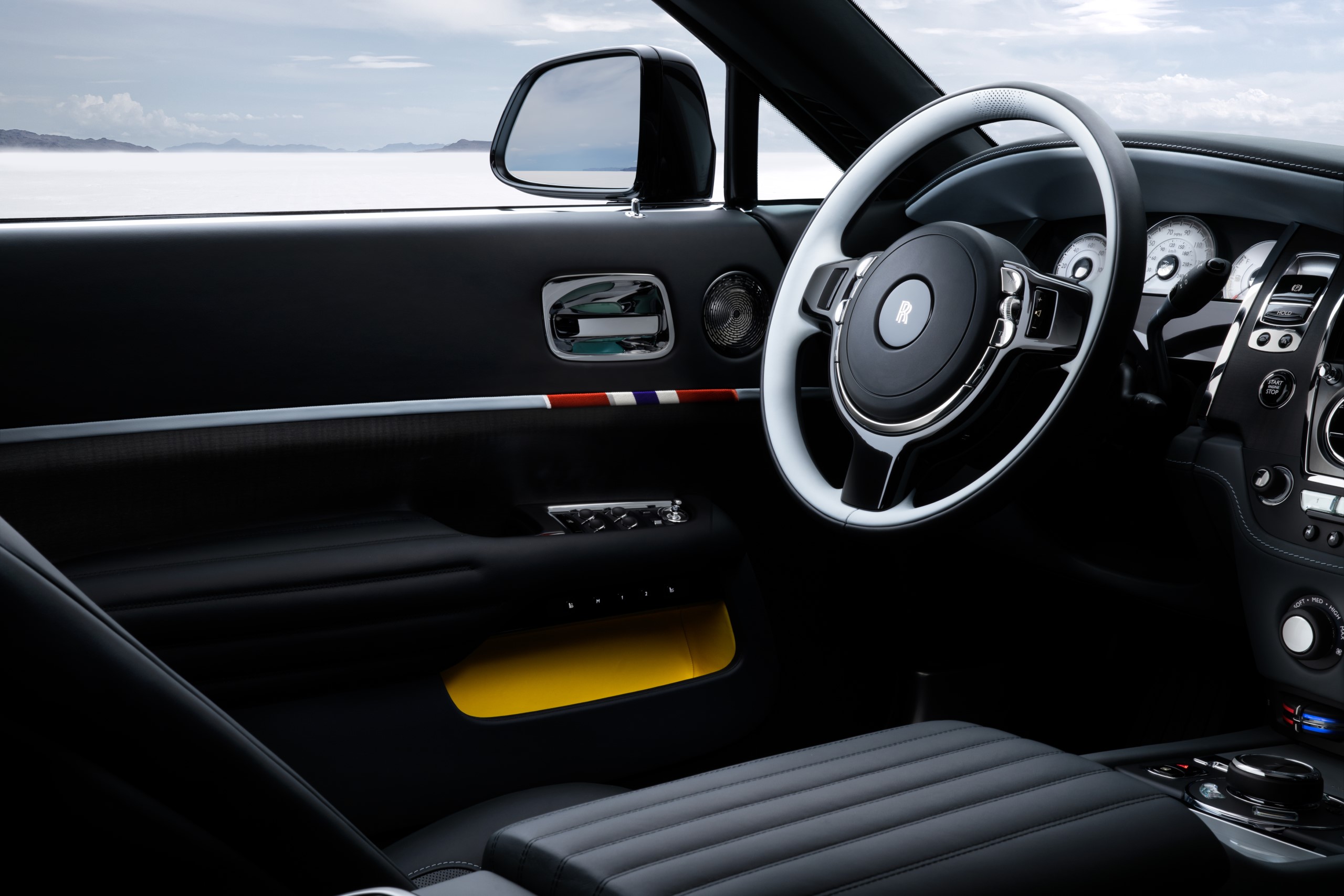 These honours are marked in both Black Badge Wraith and Dawn Landspeed with a subtle detail in the driver’s door, made in the same Grosgrain weave silk and colours to match the original medal ribbons.
