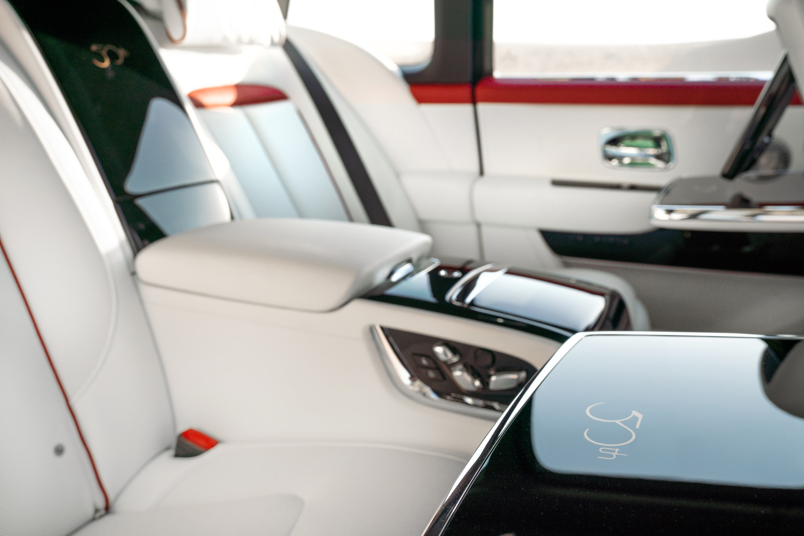 Black Badge Cullinan carries the colours of the flag of Modena and the livery featured on the couple’s racing cars. An additional tribute to the Sloss’ love of racing adorns the doors of the couple’s Black Badge Cullinan, each door panel is embroidered with Mrs. Sloss’ personal racing logo – a stylized stiletto.