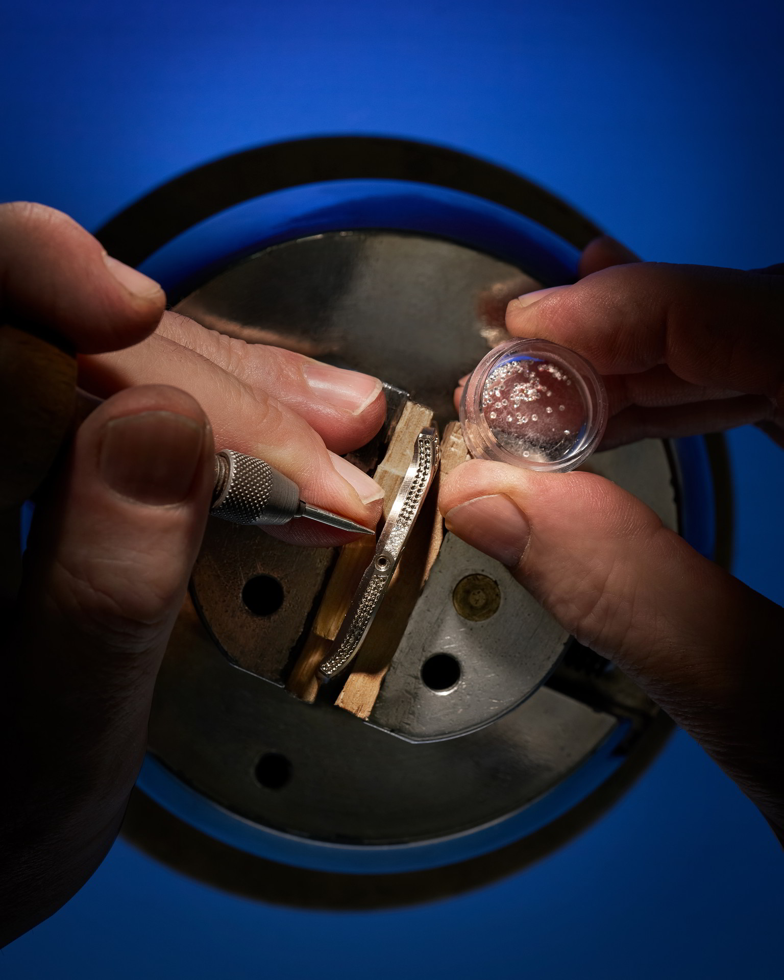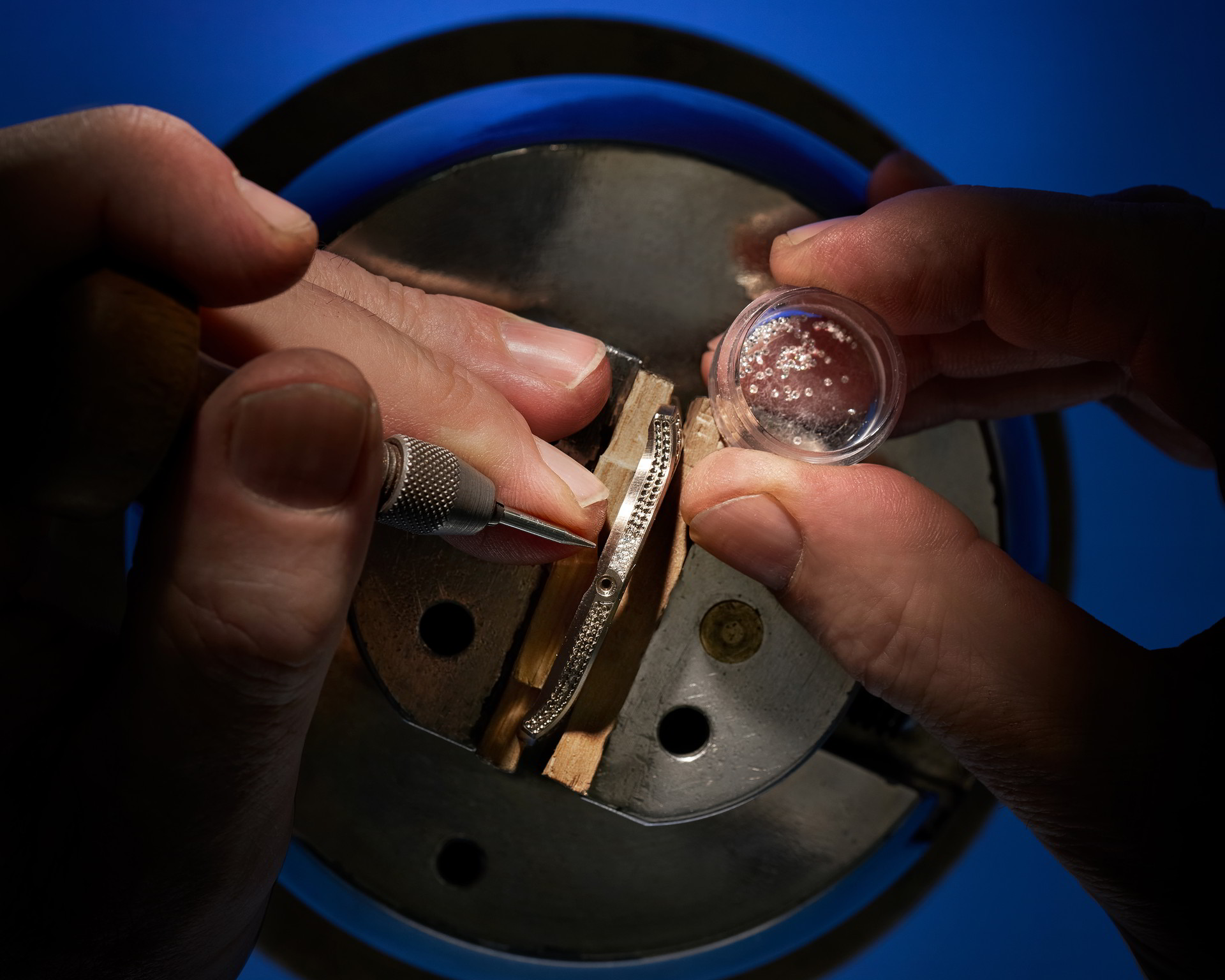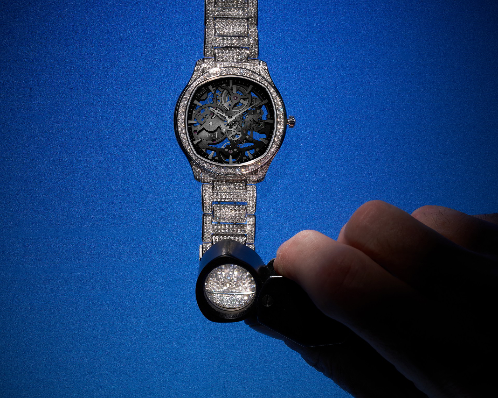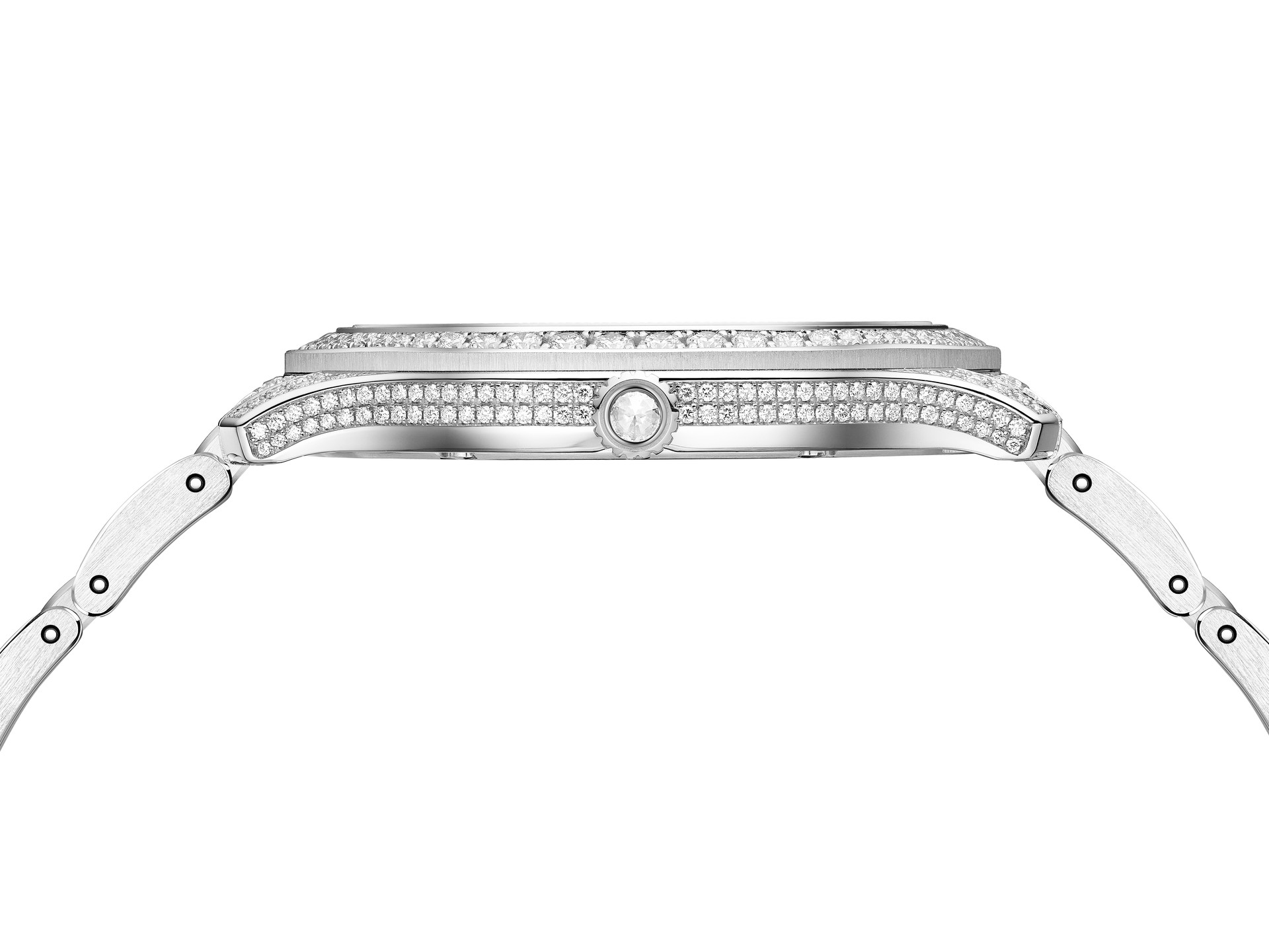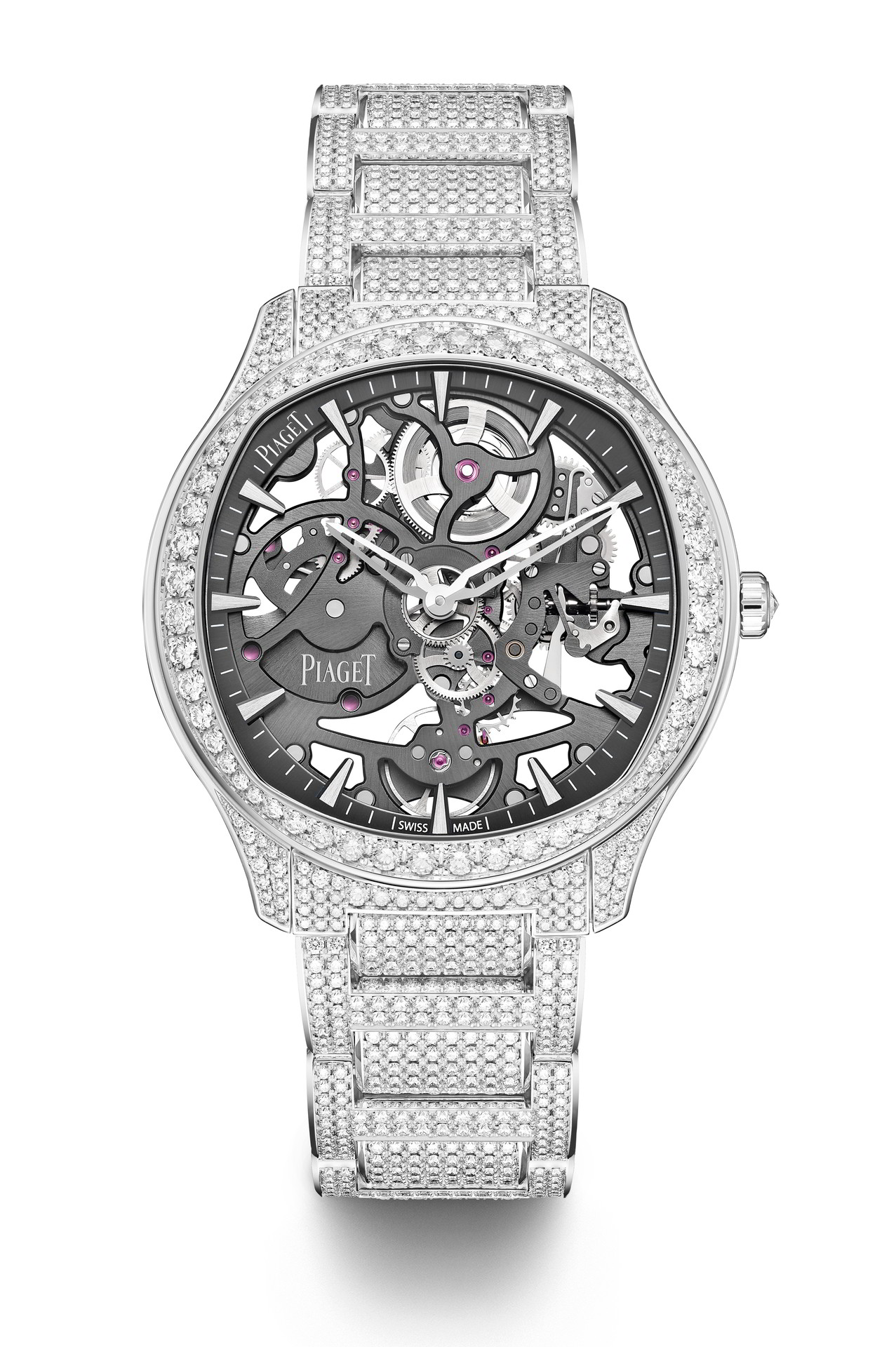 The 42mm white gold case of this watch, which measures a mere 7.35mm in thickness, has been adorned with 268 brilliant-cut diamonds and comes with a white gold polished and satin-finished ‘H’ design integrated bracelet that has been set with a further 1478 brilliant-cut diamonds. The entire setting takes over 61 hours to complete and is achieved thanks to a unique savoir-faire where the diamonds are cut-to-measure before being set. This attests to Piaget’s expertise in high jewellery and gem-setting, where the artisans in the “Atelier Extraordinaire”, work together in the creation of exceptional pieces.